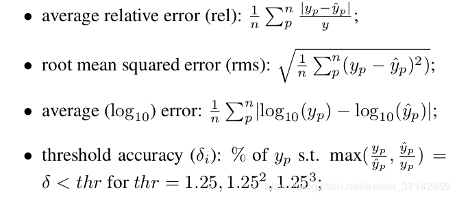 这样一个损失函数存在的问题是,当深度真实值很大时,它们也会变得很大。为了补偿这一问题,我们考虑对深度取倒数。将目标深度图的 y定义为 y=m/yorig,式中 m是场景中的最大值(例如NYU 数据集中取10m)。其他方法考虑了对深度值进行转换和对loss做log变换。
