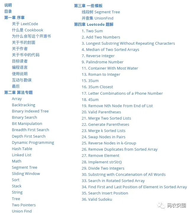 除此之外,这里再跟大家推荐一本前不久火爆 GitHub 的 LeetCode 中文刷题手册,这本小册里面共包含刷 LeetCode 后整理的 520 道题,每道题均附有详细题解过程。自发布以后,受到技术圈内广大开发者的赞赏,建议大家收藏阅读。目录如下: