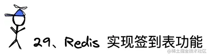 # 用户2月17号签到 SETBIT u:sign:1000:201902 16 1 # 偏移量是从0开始,所以要把17减1 # 检查2月17号是否签到 GETBIT u:sign:1000:201902 16 # 偏移量是从0开始,所以要把17减1 # 统计2月份的签到次数 BITCOUNT u:sign:1000:201902 # 获取2月份前28天的签到数据 BITFIELD u:sign:1000:201902 get u28 0 # 获取2月份首次签到的日期 BITPOS u:sign:1000:201902 1 # 返回的首次签到的偏移量,加上1即为当月的某一天 复制代码